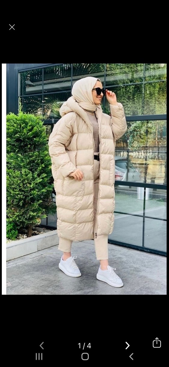 Bej renkte, uzun boylu ve bol kesim puff mont. Yumuşak ve sıcak fleece kumaştan, yüksek yakalı ve uzun kollu, rahat sokak stili için uygun. ❄️ Fermuar kısmı alt tarafta takılı kalmış terzide yapılabilir mağazadan sıfır ürün