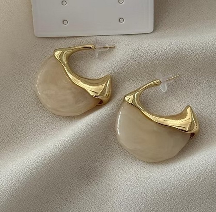 Bej midi küpeler, parlak ve çağdaş tasarımıyla minimal ve zahmetsiz şıklık sunar. Romantik akşamlar için klasik zarafet taşır.