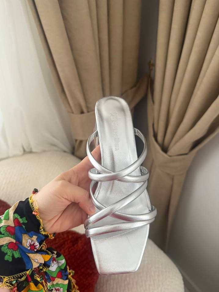 Bej renkli metal tokalı ve stiletto topuklu kadın sandalet, minimalist ve çağdaş tarzı günlük kullanıma uygun şekilde bir araya getirir.