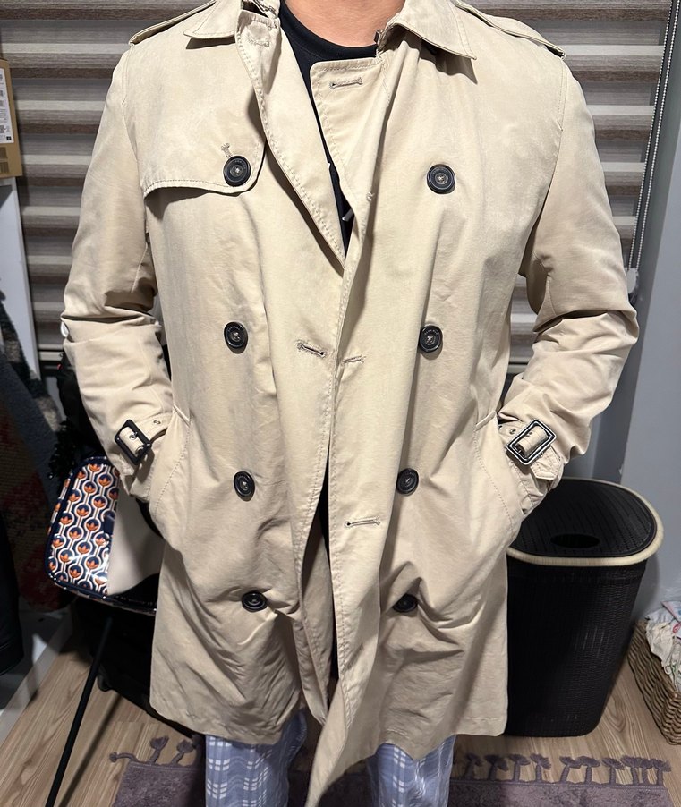 Bej Midi Boy Düğmeli Erkek Trençkot