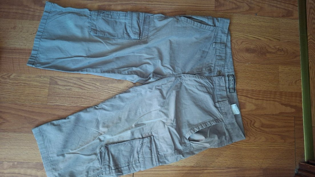 Bej renkli, tokalı detaylı, bol kesim erkek midi denim şort, günlük dış mekan kullanımı için uygundur.