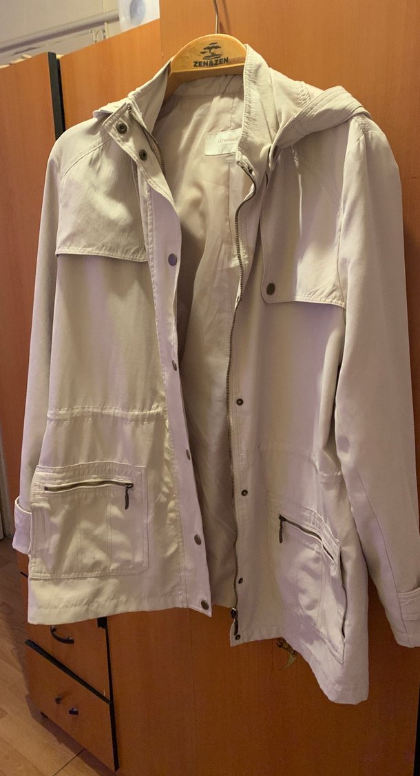 Bej renkli, midi uzunlukta kadın ceketi, düğmeli ve kesik yaka detaylıdır kapüşonlu . Uzun kollu, regular fit ve sentetik kumaştan üretilmiştir. Minimalist, günlük sokak stili için uygundur.