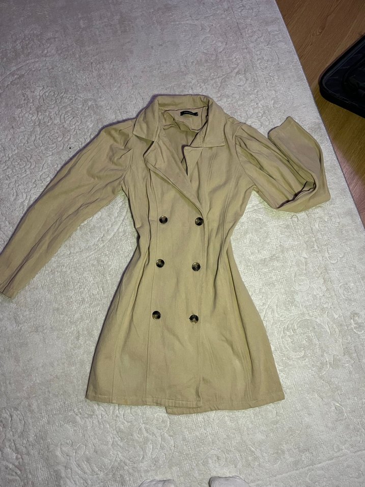 Bej Midi Düğmeli Kadın Trençkot Elbise