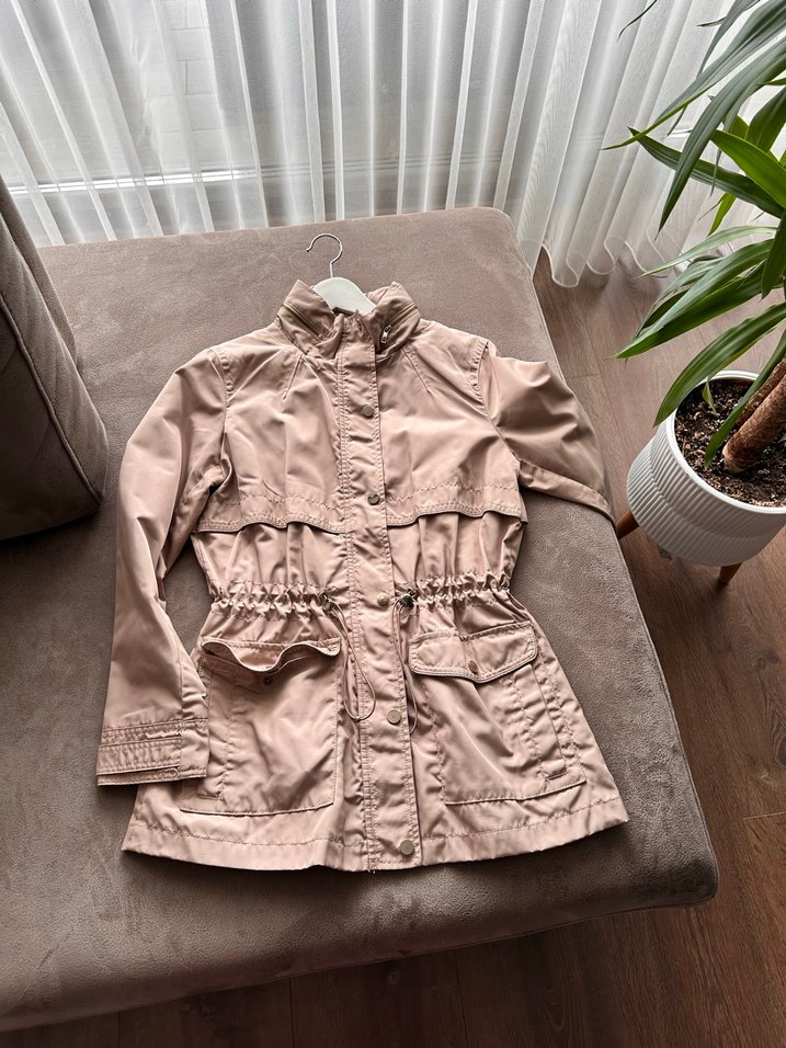 Bej renkte, düğmeli ve rahat kesime sahip midi uzunlukta kadın ceketi. Uzun kollu, yakası kesik ve ayarlanabilir beli ile günlük kullanıma uygun.