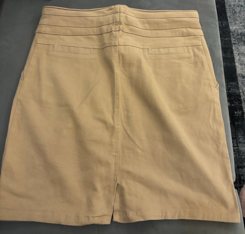 Ofis kullanımı için uygun, bej renkli, midi boy hamile eteği. İnce ve parlak dokusu ile sade ve şık bir görünüm sunar. ✨