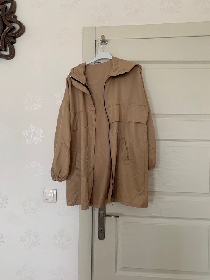 Nefes alabilen keten kumaştan yapılmış, hafif bej renkli midi uzunlukta hamile ceketi. Bol kesim, uzun kollu ve klasik yaka detaylarına sahip, minimalist sokak tarzında günlük kullanıma uygun.