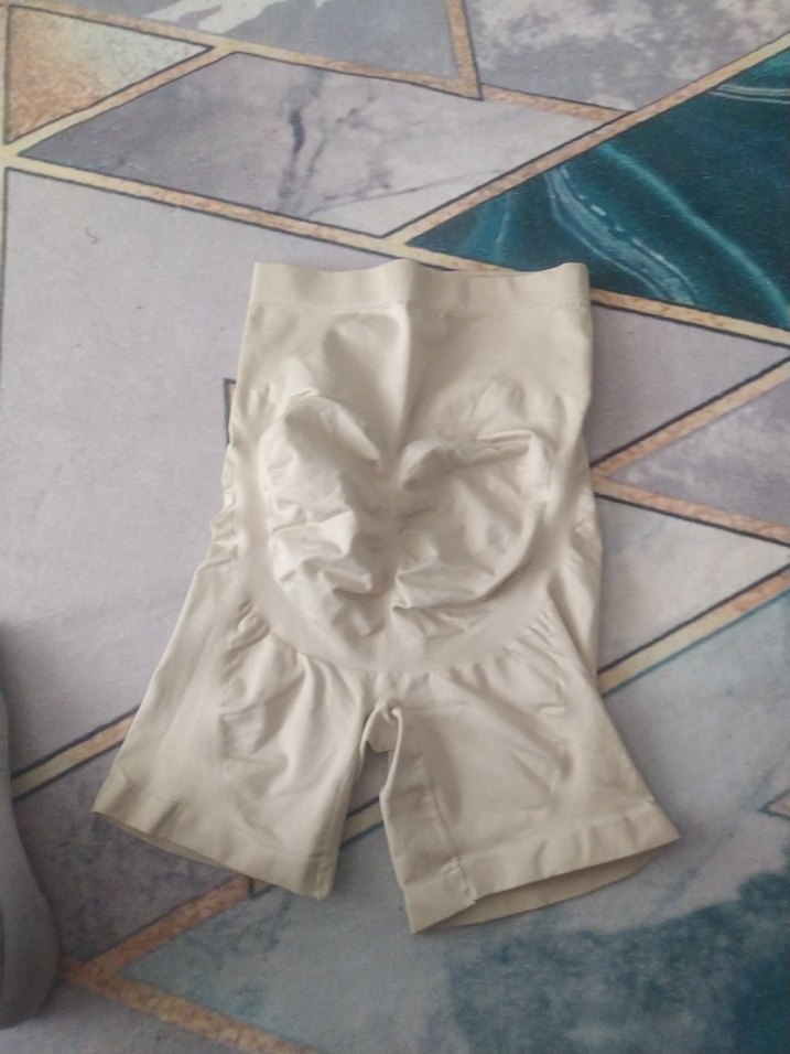 Bej renkte, midi boyda, vücuda oturan hamile ve emzirme korsesi, rahat ve destekleyici esnek kumaştan üretilmiştir.
