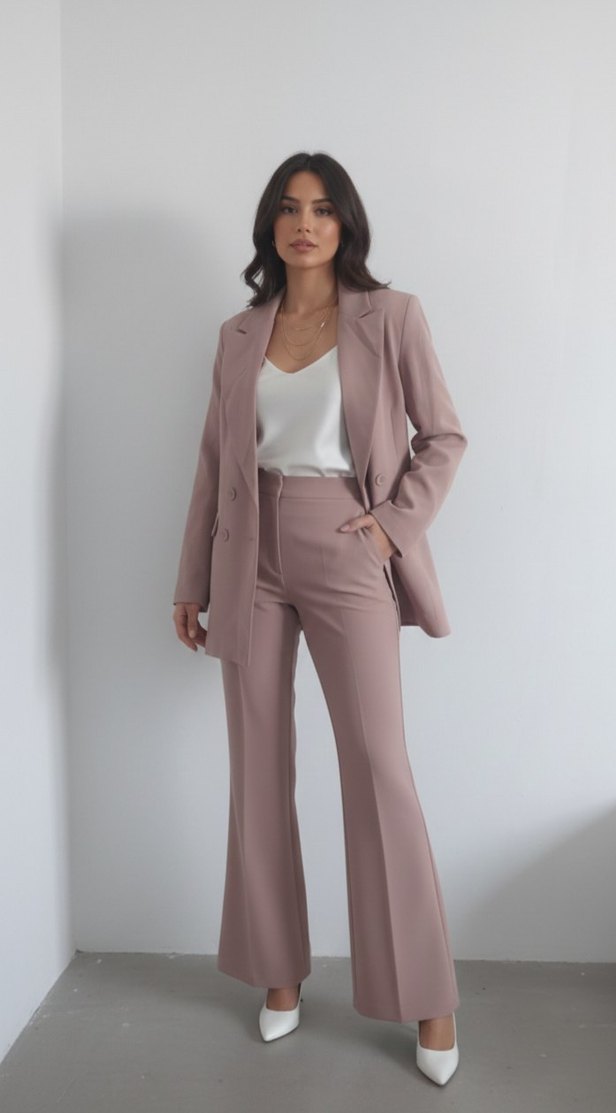 Bej midi uzunlukta, notched lapel yakalı, regular fit kadın blazer. Düz desensiz, sentetik kumaştan, strappy kollu, ofis için şık ve rahat bir parça.