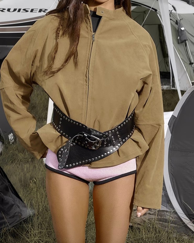 Bej renkli, normal boy midi ceket, regular fit kesim, notched lapel yaka ve uzun kolludur. Fermuarlı ve desensiz, günlük sokak stili için uygundur.