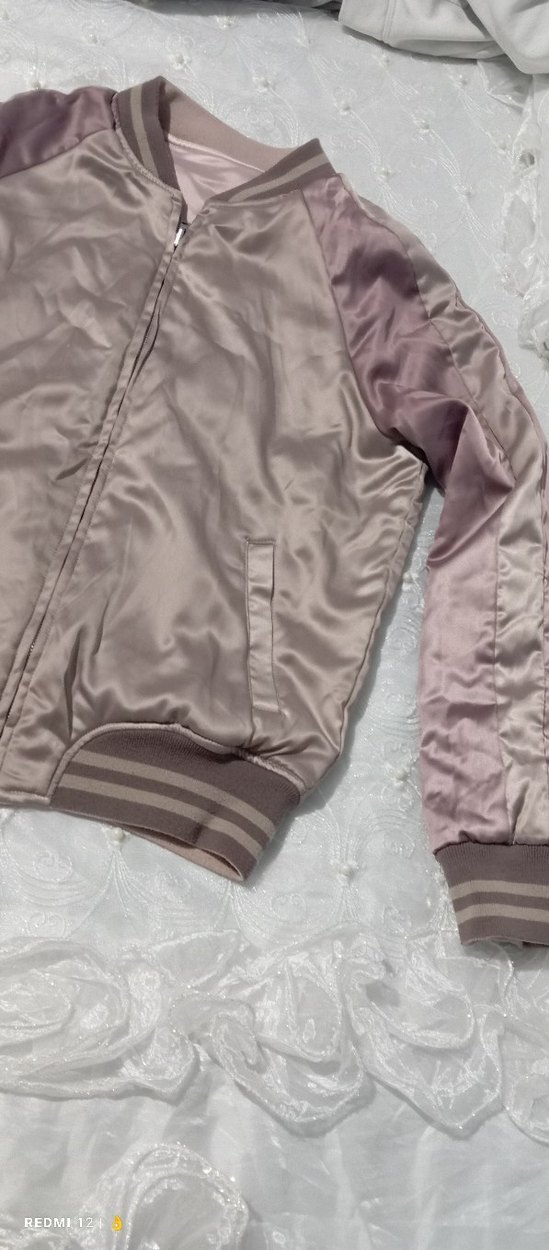 Bej renkte, fermuarlı ve rahat kesime sahip kadın ceketi. Uzun kollu, yuvarlak yaka ve midi uzunlukta, günlük sokak stili için uygundur. çift taraf kullanilir 15,16yas
