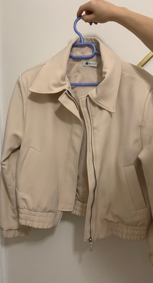 Bej midi uzunlukta, notched lapel yakalı ve uzun kollu kadın ceket. Sentetik kumaştan, düzenli kesim ve elastik etek ucu ile günlük rahat şıklık sunar.