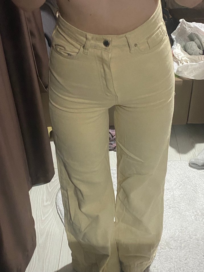 Kadınlar için bej renkte, midi boyda ve ince kesim jean pantolon. Yumuşak ve ipeksi dokusu ile günlük rahat ve şık bir tarz sunar.