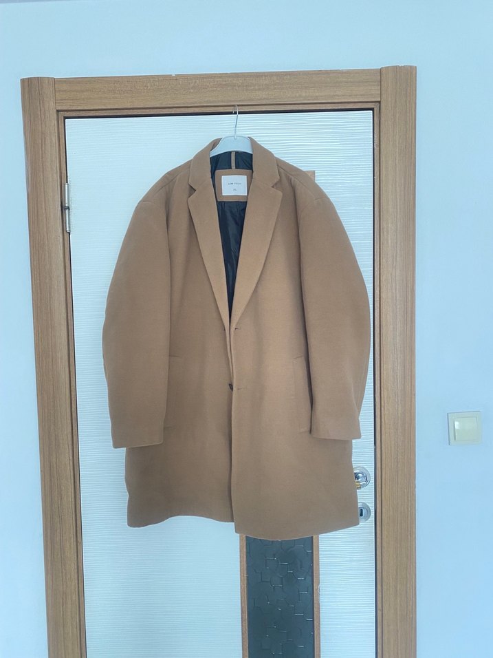 Bej midi uzunlukta, keskin yakalı ve uzun kollu kadın kabanı. Rahat kesimi ve yumuşak, sıcak kumaşıyla minimalist ve şık bir görünüm sunar. ✨