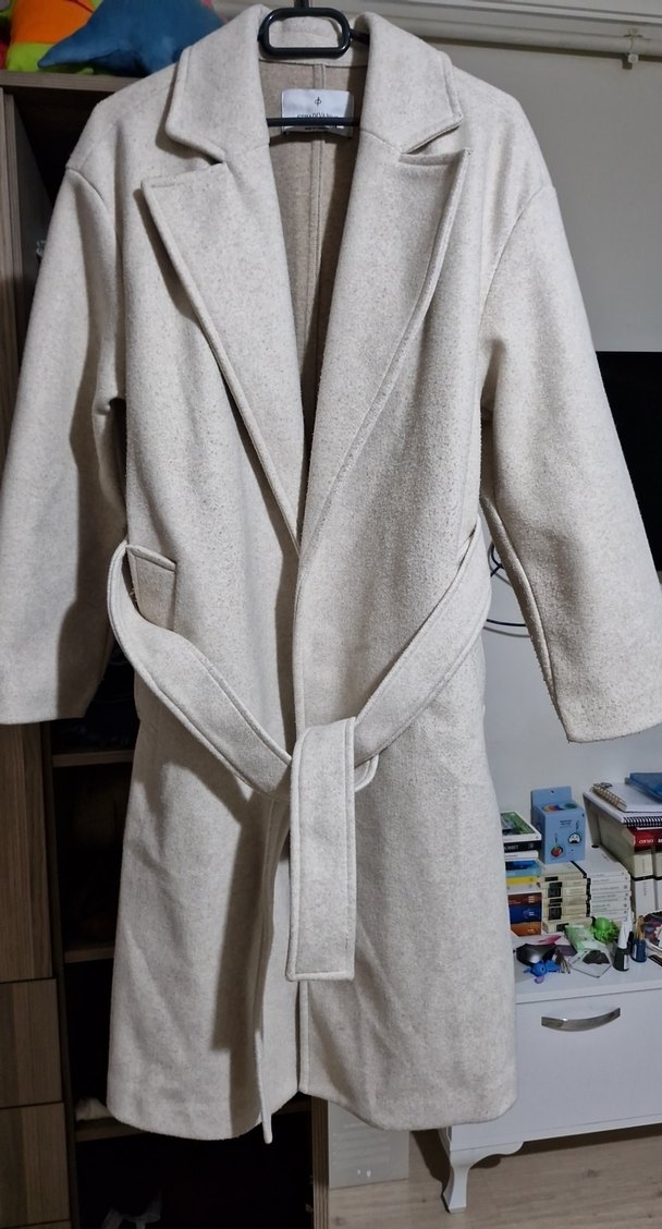 Bej renkli, kemerli, midi uzunlukta kadın kabanı. Notch yaka ve uzun kollu, rahat kesim, yumuşak ve sıcak kumaştan üretilmiştir. Günlük kullanıma uygundur.