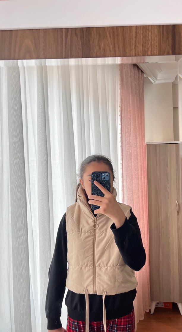 Bej renkte, yüksek yakalı ve kolsuz midi uzunlukta kadın kışlık mont. Minimalist tarzda, yumuşak ve sıcak kumaştan yapılmış, günlük kullanıma uygun şık ve rahat bir parça. ❄️