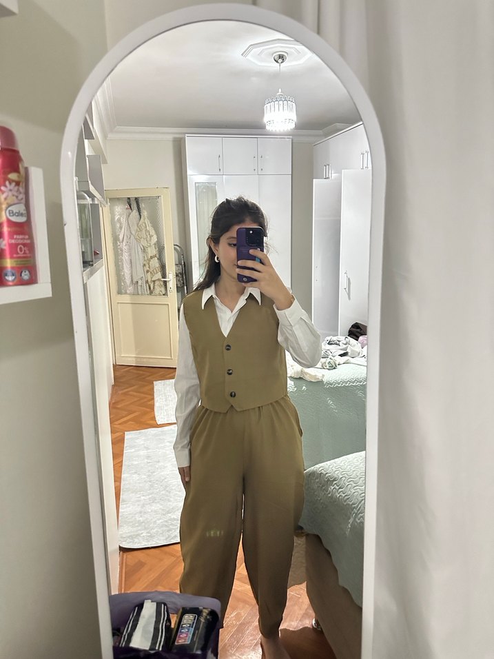 Pamuk kumaştan, kolsuz, bej midi takım elbise. Ofis kullanımı için uygun, rahat kesim ve zahmetsiz şıklık sunar. sıfır hiç giyilmedi 36 38 beden uyumludur..