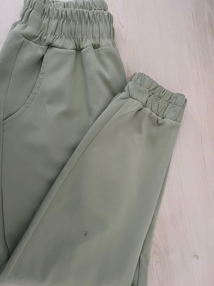 Yumuşak sentetik kumaştan, rahat lastikli bel ve desen içermeyen sade tasarımlı bej midi pantolon. Günlük rahat sokak stili için uygundur. Biraz tüylenme mevcuttur