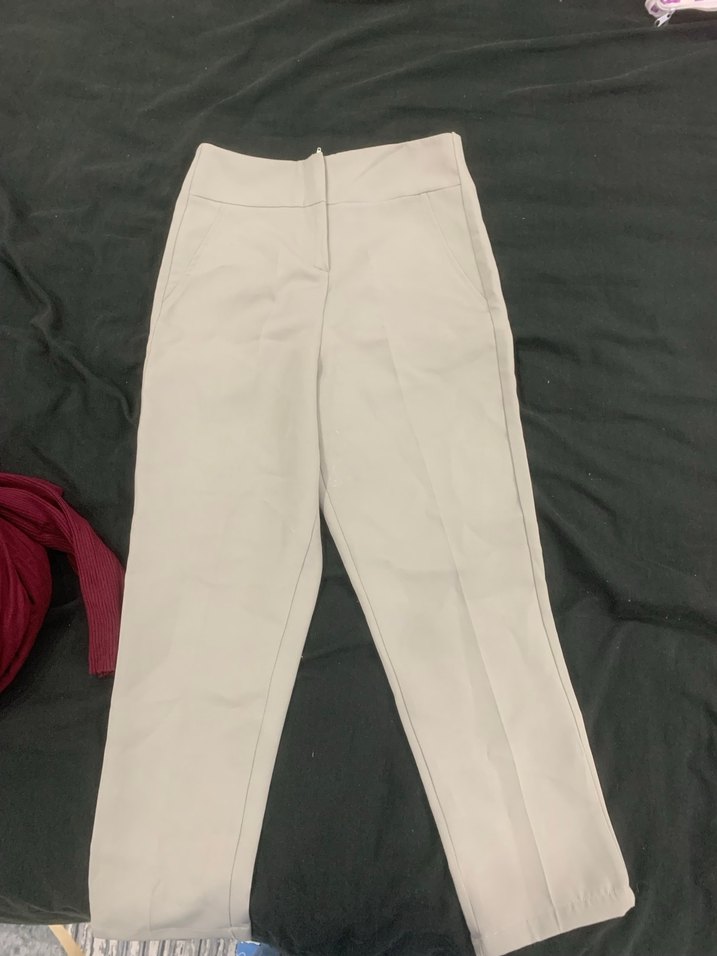 Bej renkte, midi boy, regular fit kadın kumaş pantolon. Düz ve şık tasarımıyla ofis için rahat ve gündelik bir stil sunar.