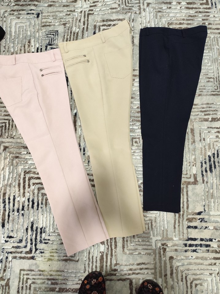 Bej renkte, düz ve midi boyda bu kadın kumaş pantolon, rahat kesimi ve fermuarlı cepleriyle ofis için uygundur. Normcore Paris tarzı sunar. üçlü olarak satışa çıkardık