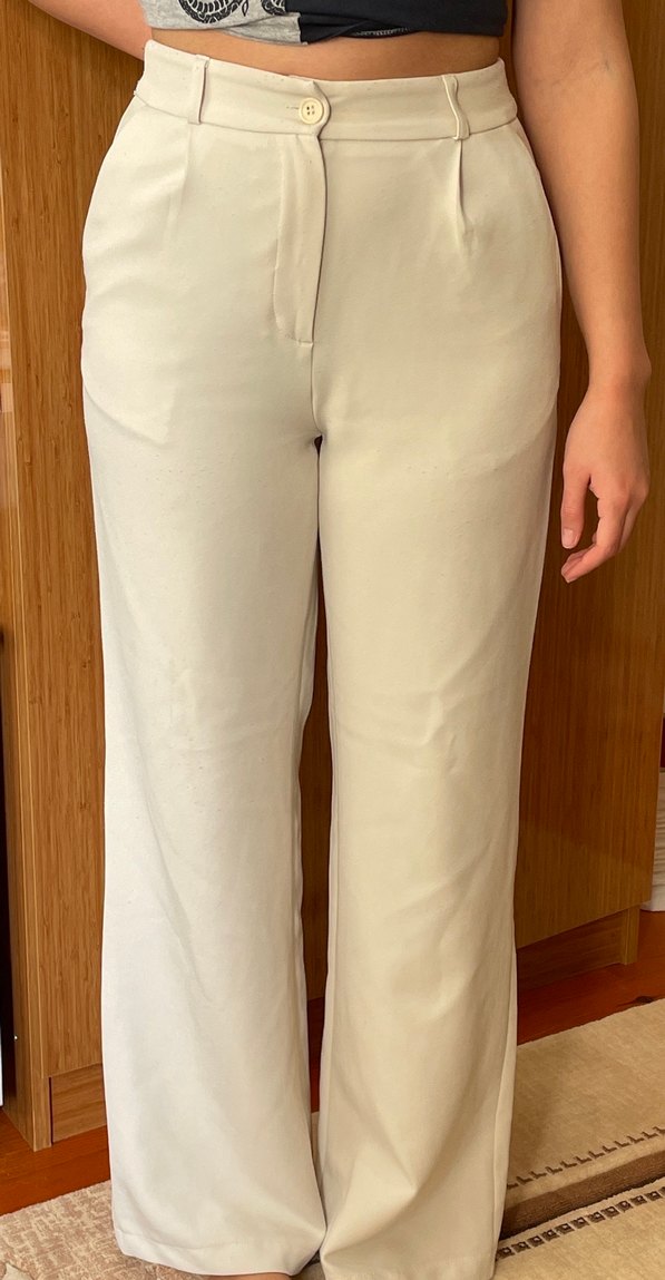 Bej midi uzunlukta, regular fit kadın kumaş pantolon. Pürüzsüz sentetik kumaştan, minimalist ve normcore tarzda, ofis için uygun. Zahmetsiz şıklık sunar.