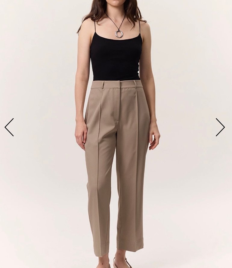 Bej renginde, midi boyda, regular fit kadın kumaş pantolon. Yumuşak ve ipeksi dokusu ile minimalist ve normcore tarzını yansıtır. Ofis ve günlük kullanıma uygundur temiz kusursuz 1 kez kullanıldı