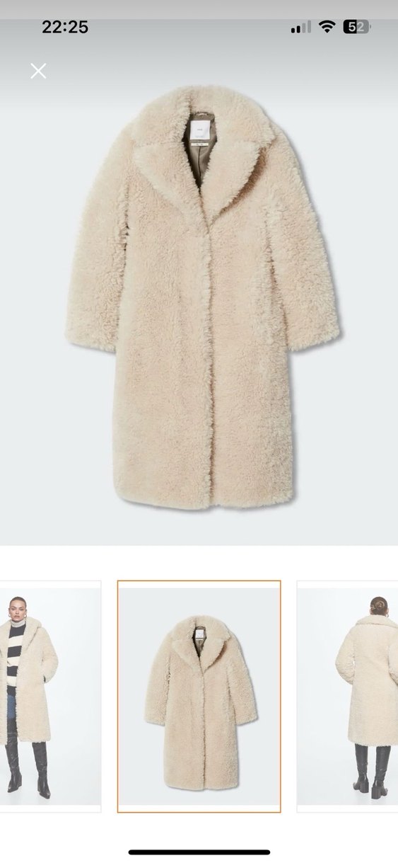 Bej renkte, yumuşak peluş kumaştan yapılmış midi uzunlukta kadın kabanı. Kürk detaylı, kesik yaka ve uzun kolludur. Mango kürk etiketli hiç giyilmedi S beden ama xs de olur