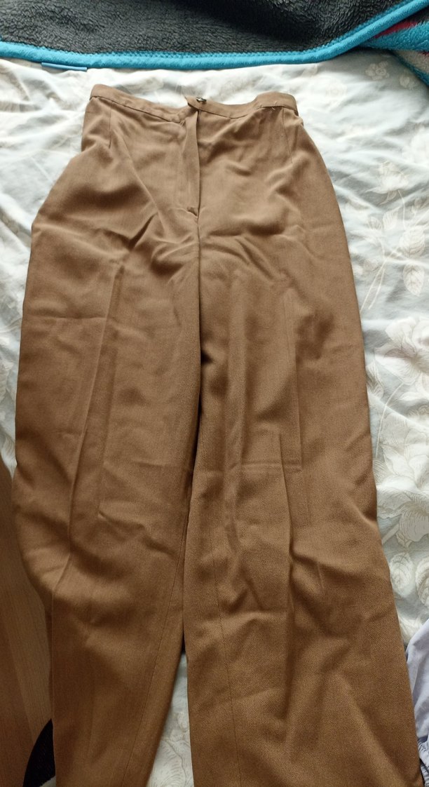Bej renkte, midi boyda, saten dokulu kumaştan, dökümlü ve normal kesim kadın pantolonu. Parlak yüzeyli, minimalist ve ofis stiline uygun .