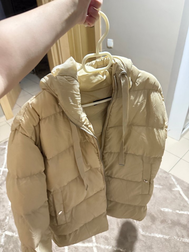 Bej midi uzunlukta, boğazlı yakalı, fitted kesim ve şişme tasarımlı kadın montu. Yumuşak sentetik kumaştan, şık ve rahat kullanım için uygundur.