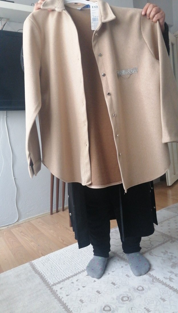Bej renkli, midi boy, süet dokulu, düğmeli ve uzun kollu rahat kesim ceket. Notlu yakası ile günlük kullanıma uygundur. ✨