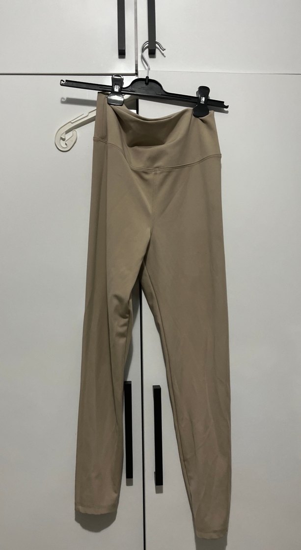 Bej midi uzunlukta kadın tayt, yumuşak sentetik kumaştan, rahat kesimli, gündelik ve ofis kullanımı için uygun. Şık ve rahat stil sunar l bedene de uyar