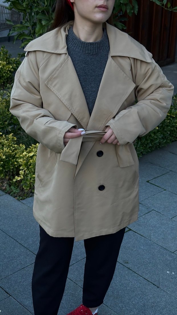 Ürün astarlı ve kemerlidir.1 ve 2 beden seçenekleri mevcuttur.Özel dikim trençkotlardır görseldeki ile birebirdir isteyene görsel paylaşılır.