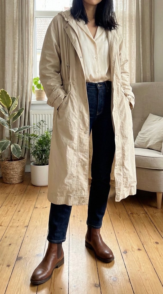 Bej renginde,, notched lapel yaka ve bol kesime sahip kadın trençkot. Günlük kullanım için rahat ve şık. Kusursuz bir kaç kez giyildi twist marka
