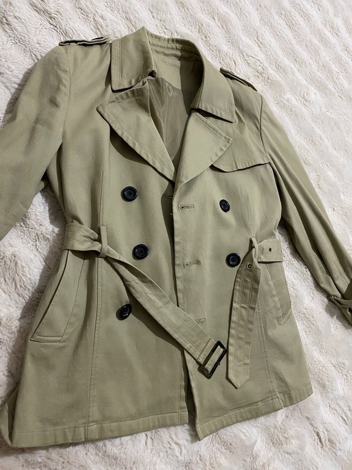 Bej midi uzunluğunda, düğmeli ve yakalı erkek trençkot. Sentetik kumaştan, askılı kollu ve rahat kesimli, günlük sokak stili için uygun. Pazarlık vardır