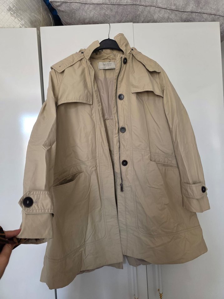 Bej renkli midi uzunlukta, düğmeli, keten kumaştan kadın trençkot. Uzun kollu ve kesimli yaka detayına sahip, rahat kesimiyle günlük sokak stiline uygun. çıkarılabilen kapşonlu kaliteli kumaş türü 1 2 defa giyilmiş kumâşı şu geçirmez yapıyâ şahiptir