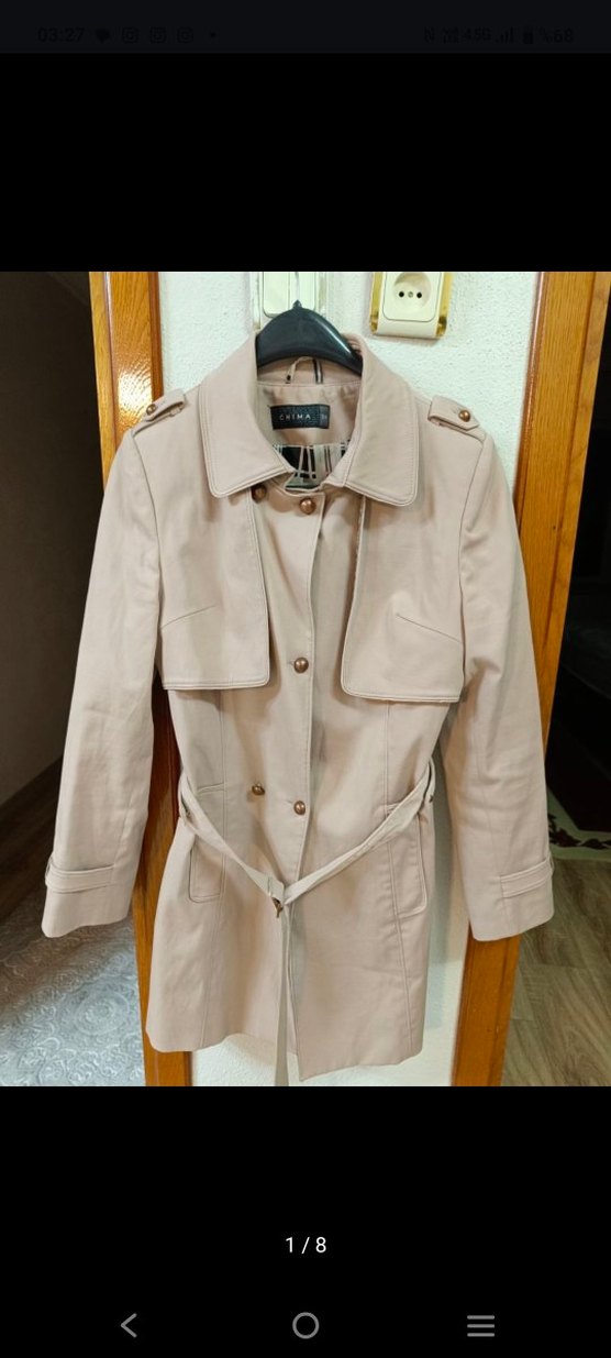 Bej midi trençkot, kesik yaka ve kuşaklı bel detayı ile. Uzun kollu, regular fit, günlük ve sokak stiline uygun.