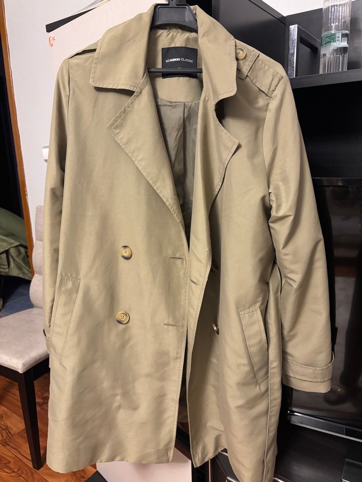 Bej renkte, düğmeli, normal boy midi kadın trençkot. Notlu yaka ve uzun kolludur, günlük kullanıma uygundur. Çok az kullanıldı ürünün herhangi bir deformesi yoktur