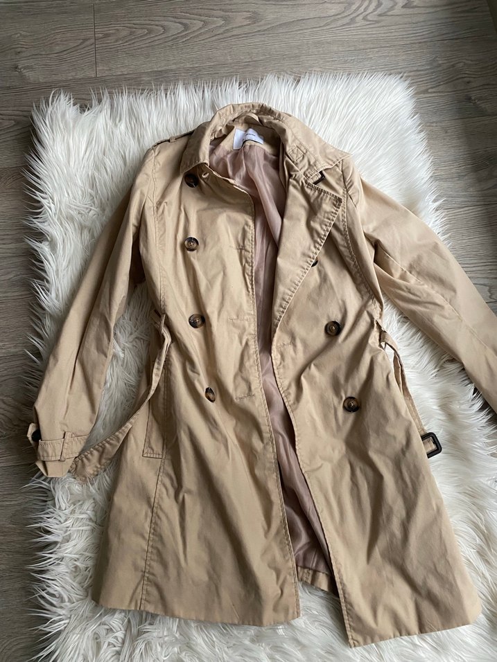 Bej renkte, bol kesim, uzun kollu kadın trençkot. Düğmeli ve suni kumaştan olup günlük kullanım için uygundur. Paris tarzı normcore stilini yansıtır.