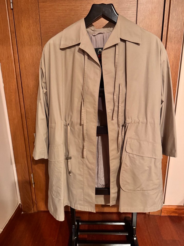 Bej midi uzunlukta kadın trençkot, kesik yakalı ve bel detaylıdır. Salaş kesimdir.Günlük sokak modasına uygun Paris tarzı. Tertemiz ürün fakat iç astarında hafif bir zedelenme olmuş fiyat ona göredir46-48 beden arasıdır