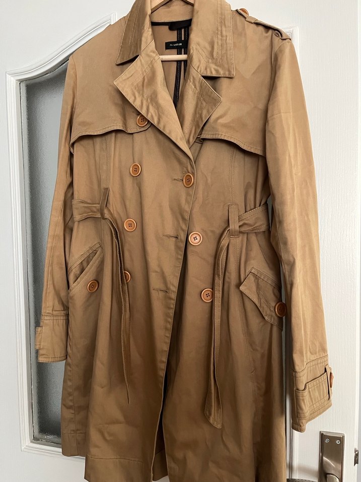 Bej midi uzunlukta, düğmeli, salaş kesim kadına özel trençkot. Keten kumaştan, uzun kollu ve parlak görünümlü, günlük rahat sokak stili için uygun. Çok kaliteli kilodan dolayı kullanamıyorum