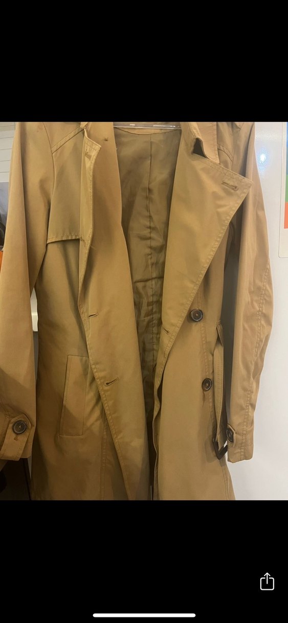Bej midi uzunlukta, düğmeli, uzun kollu kadın trençkot. Parlak dokusu ve regular kesimiyle günlük şıklık sağlar.