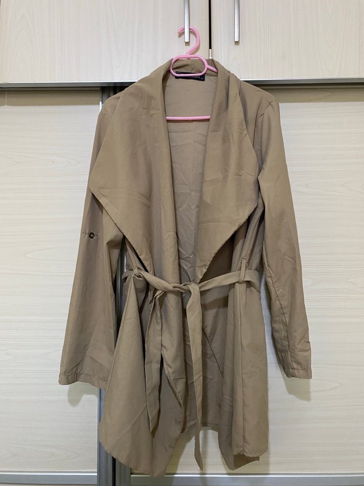 Bej renkli, kemerli midi kadın trençkot. Uzun kollu, normal kesim ve sade tasarıma sahip, yumuşak sentetik kumaştan üretilmiştir. Günlük kullanıma uygundur.
