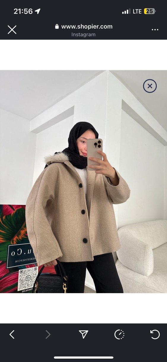 Bej renkte, uzun kollu, yün kumaştan midi boyda, rahat kesim kadın kaban. Günlük kullanıma uygun, zahmetsiz şıklık sunar. Hiç giyilmedi