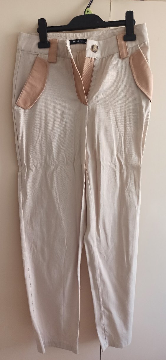 Bej renkte, midi boyda keten kumaştan, rahat kesimli kadın pantolon. Günlük kullanıma uygun, sade ve şık bir görünüm sunar.