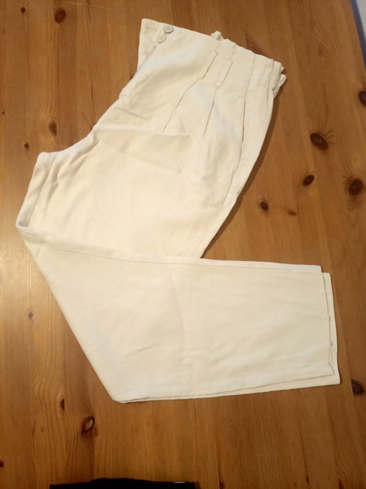 Bej renkli, keten kumaştan, midi boy ve regular fit kesime sahip kadın pantolonu. Minimalist ve rahat bir ofis şıklığı sunar.