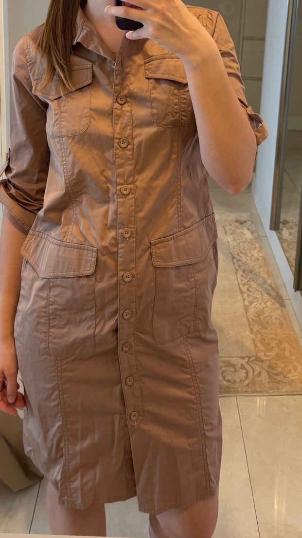 Bej Midi Kolay Şıklık Kadın Elbise
