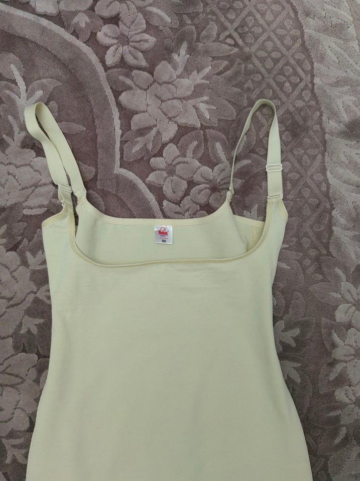 Ayarlanabilir askılı, düz ve desensiz bej renkli, normal midi uzunlukta oturan emzirme korsesi. s ve m beden icin