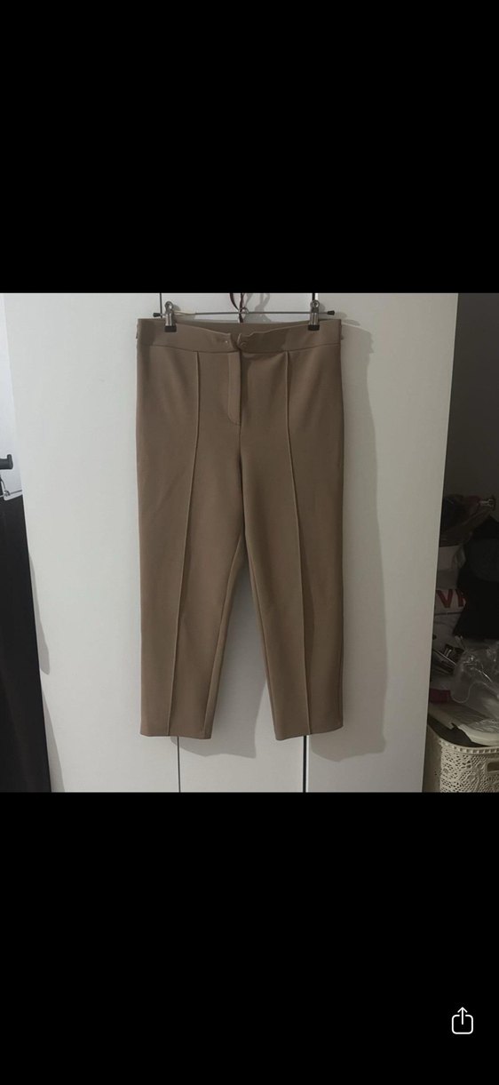 Bej Midi Kumaş Kadın Pantolon