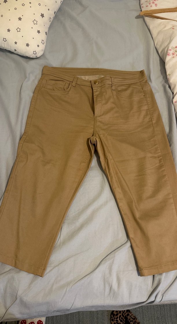 Bej kumaştan, midi boy ve regular fit kadın pantolon. Parlak görünümlü, desen içermeyen bu pantolon günlük kullanıma uygun, sade ve normcore tarzda tasarlanmıştır.