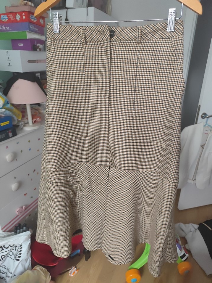 Bej Midi Önden Yırtmaçlı Kadın Etek