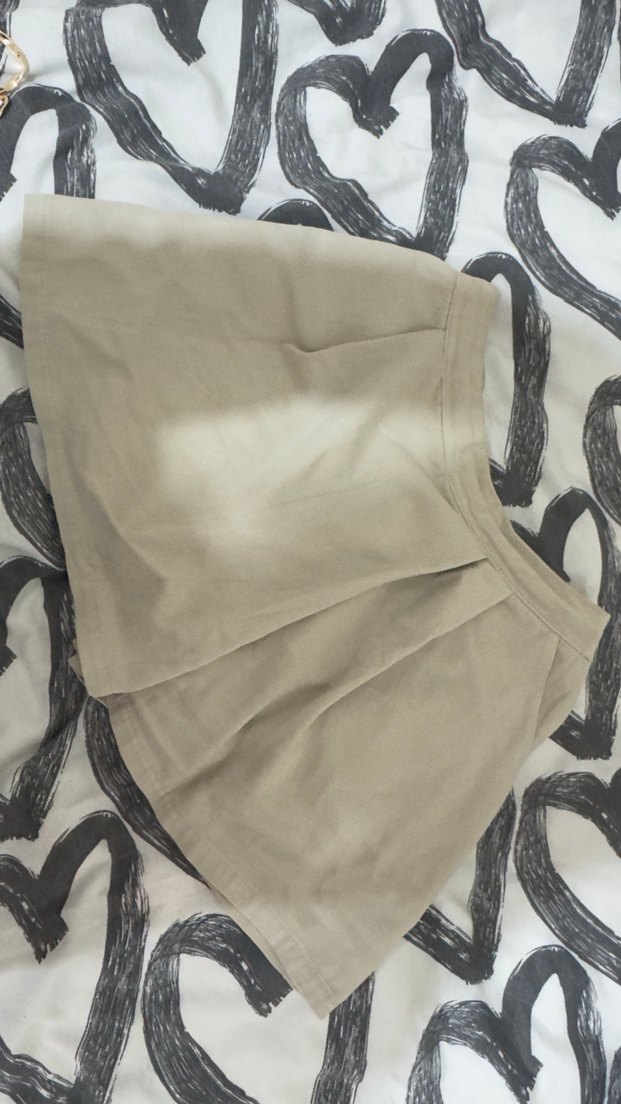 Bej renkte, pilili ve midi boyda, rahat kesimli etek. Yumuşak keten kumaştan üretilmiştir, günlük kullanım için uygundur.
